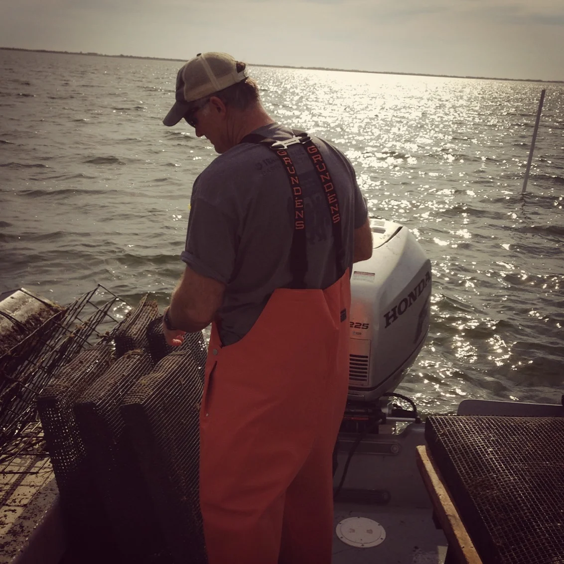 After winning with Alinghi, Matt and Liz moved their growing family back to Long Island’s South Shore where he is now putting his considerable strength to work handling Lucky 13’s oyster cages.